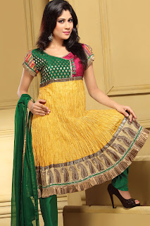 Long kurti with short, half and full sleeves, but tight on arms, tight and fit on top of the waist and below the butts look like an umbrella, called Anarkali Umbrella Frocks or Kameez. The Anarkali Shalwaar is just like the Churidar Salwaar that generally used with Frocks. It was to the point and fantasy demo of Anarkali dress and Anarkali Frocks.