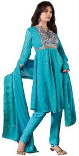 Anarkali suits, the latest fashion trend to emerge in the market for traditional Indian attire, are today seen making their presence felt everywhere, right from wedding parties to jagrans to everyday wear. Madhubala in the song ‘Pyar kiya to darna kya’ from ‘Mughal-e-Azam’ or Madhuri in the song ‘Aaja Nachle’ from the movie ‘Aaja Nachle’ wore the same Anarkali dress or Anarkali suit. Anarkali suits are worn with churidars and the footwear usually comprises of Punjabi juttis. As far as the kameez is concerned, it is figure-hugging till the upper torso and below that, it turns into a frock and gets a lot of flare.![]() |